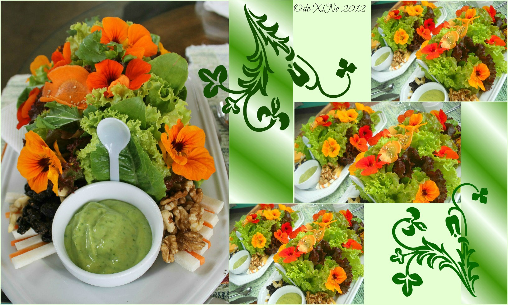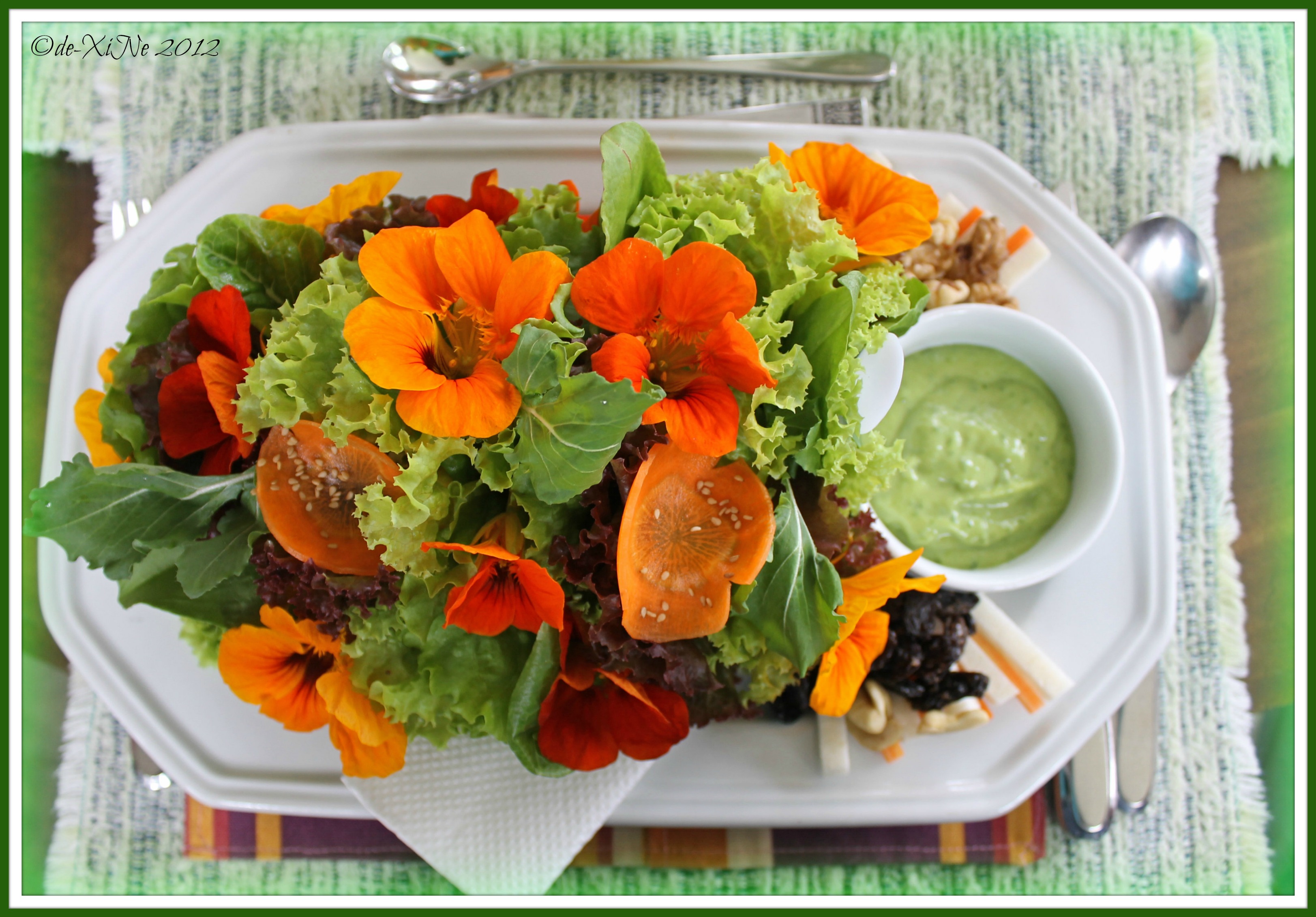 Health (and Beauty) on A Platter (“,) The dressing is a mix of organic flax oil, sunflower oil and olive oil with seven fresh garden herbs. – Reusing 1 shot from my 2010 visit, i forgot to take a picture of all our salad platters in a row. Oh well.