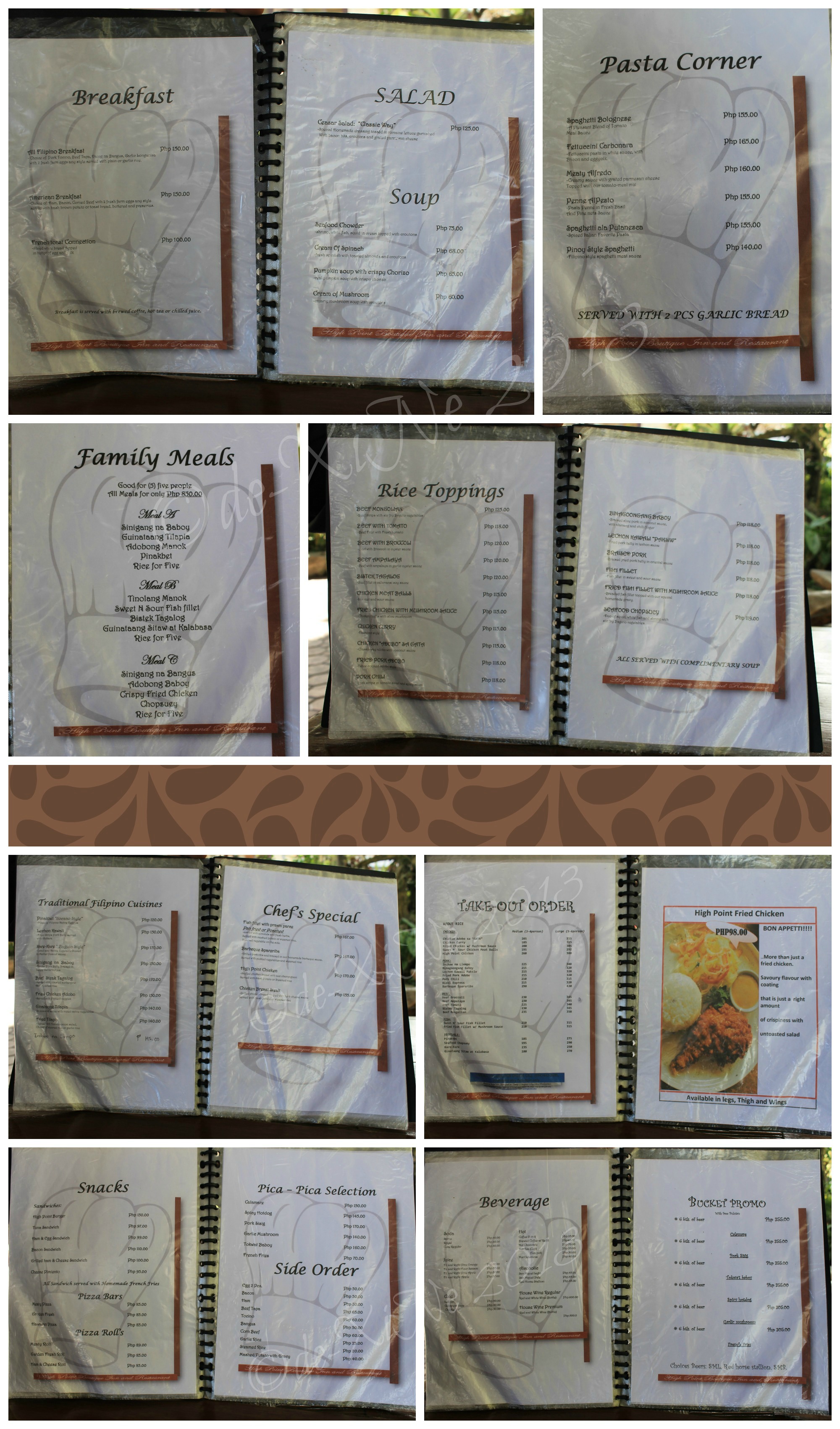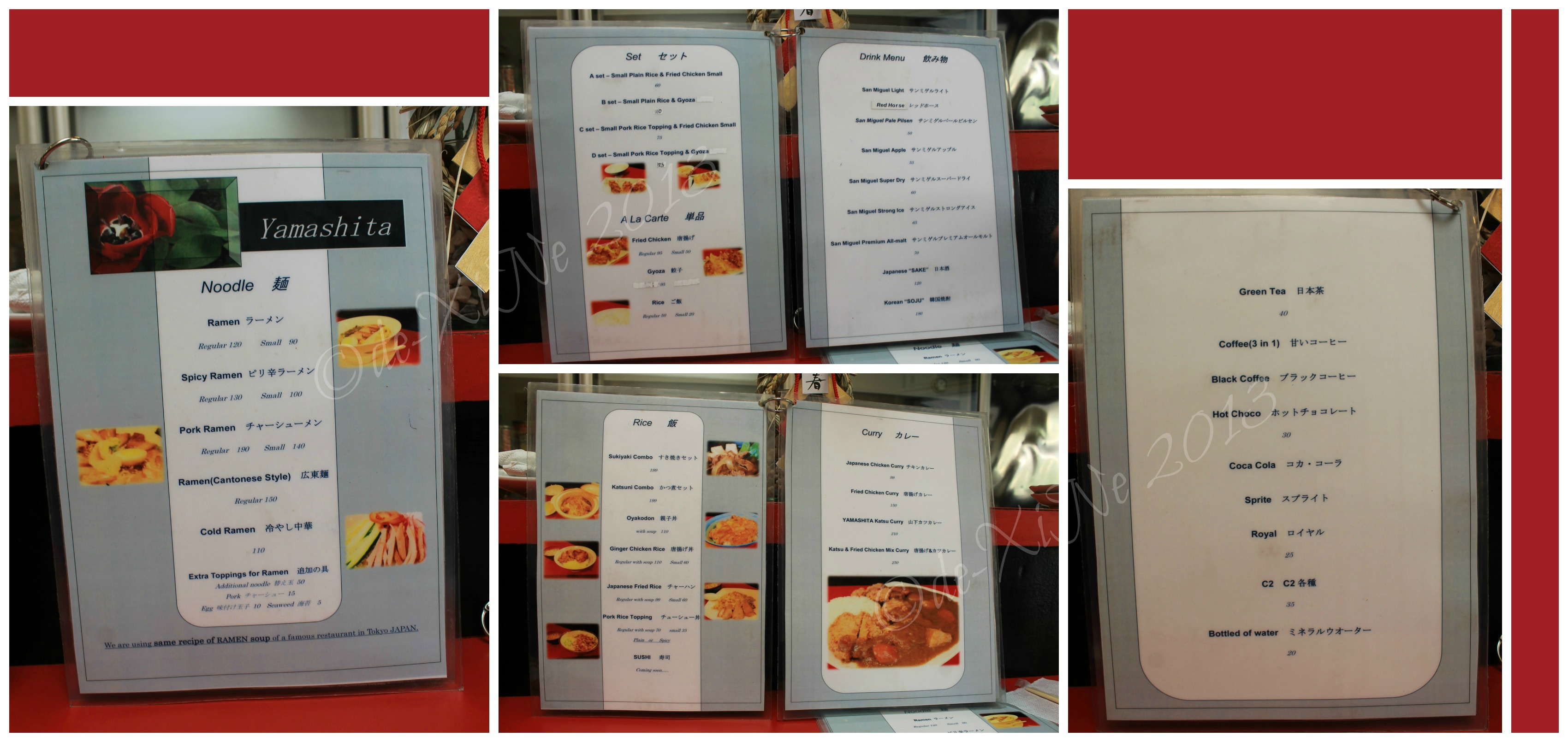 I feel like I’m leaving so much time in between posts, I wanted to give you a few more infobites about dining around in the City of Pines for this week’s topic. Just in case you’re wondering what’s served and how much these go for from a particular resto, I’ve got a handful of menus (two pairs of hands full would be more accurate =b) from places I’ve checked off the list before 2013 ended that I haven’t gotten around to writing a post for yet.