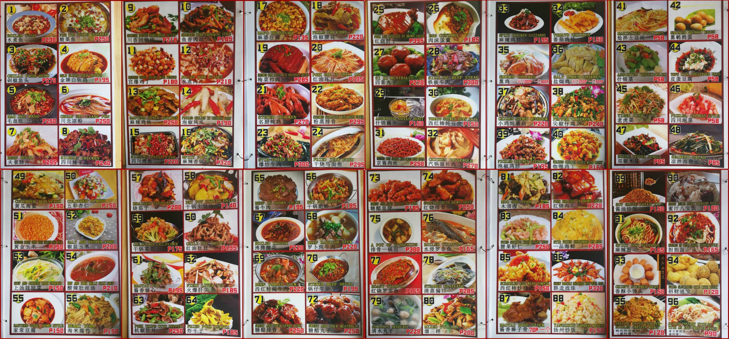 The menu (lifted from a Facebook post announcing their opening). They are one dish shy of offering 100 items. The 97th to 99th items are not on the collage. *hihi See paragraph below for a rundown of that.